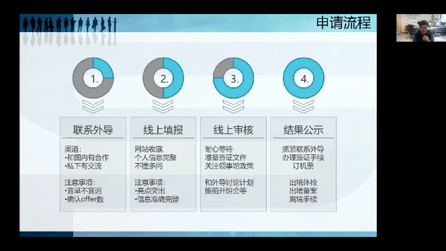 唐乾景学长向大家分享了在国外课堂上的趣事以及出国读博的优势与收获。同时,他向大家介绍了申请岗位制博士时获取信息的主要途径,为有出国深造意向的同学们提供了重要参考。