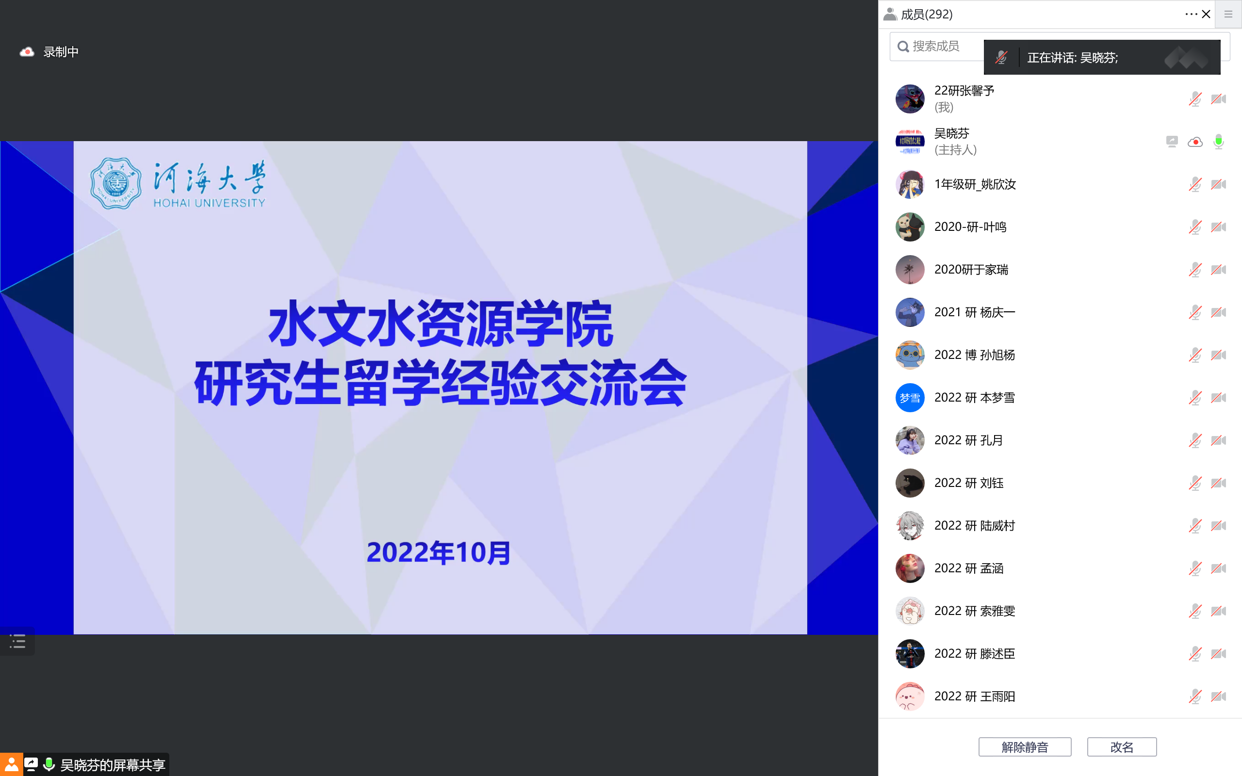 10月23日晚,万博体育 以线上会议形式组织开展研究生留学经验交流会。本次会议邀请了捷克理工大学的博士生李泰霖、荷兰乌特勒支大学的博士生唐乾景以及德国海德堡大学的博士生王孟浩三位优秀学长分享经验,会议由研究生辅导员吴晓芬老师主持,学院各年级本科生及研究生共300余名同学参加了此次活动。