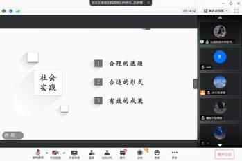 大会开始,水文院团委书记莫晓曼老师首先介绍了此次寒假社会实践的五种活动类型。针对每种不同类型的参与方式、注意事项等莫老师做了详细的介绍,并且重点强调了疫情防控下的安全问题,同学们须按照当地的防控要求开展社会实践活动,线下禁止跨市活动,建议有实践需要的同学通过“云组队”、“云实践”的方式开展。期间莫老师与大家实时互动,解答同学的疑问,了解同学们的想法,也给同学们的活动提出一些建议。