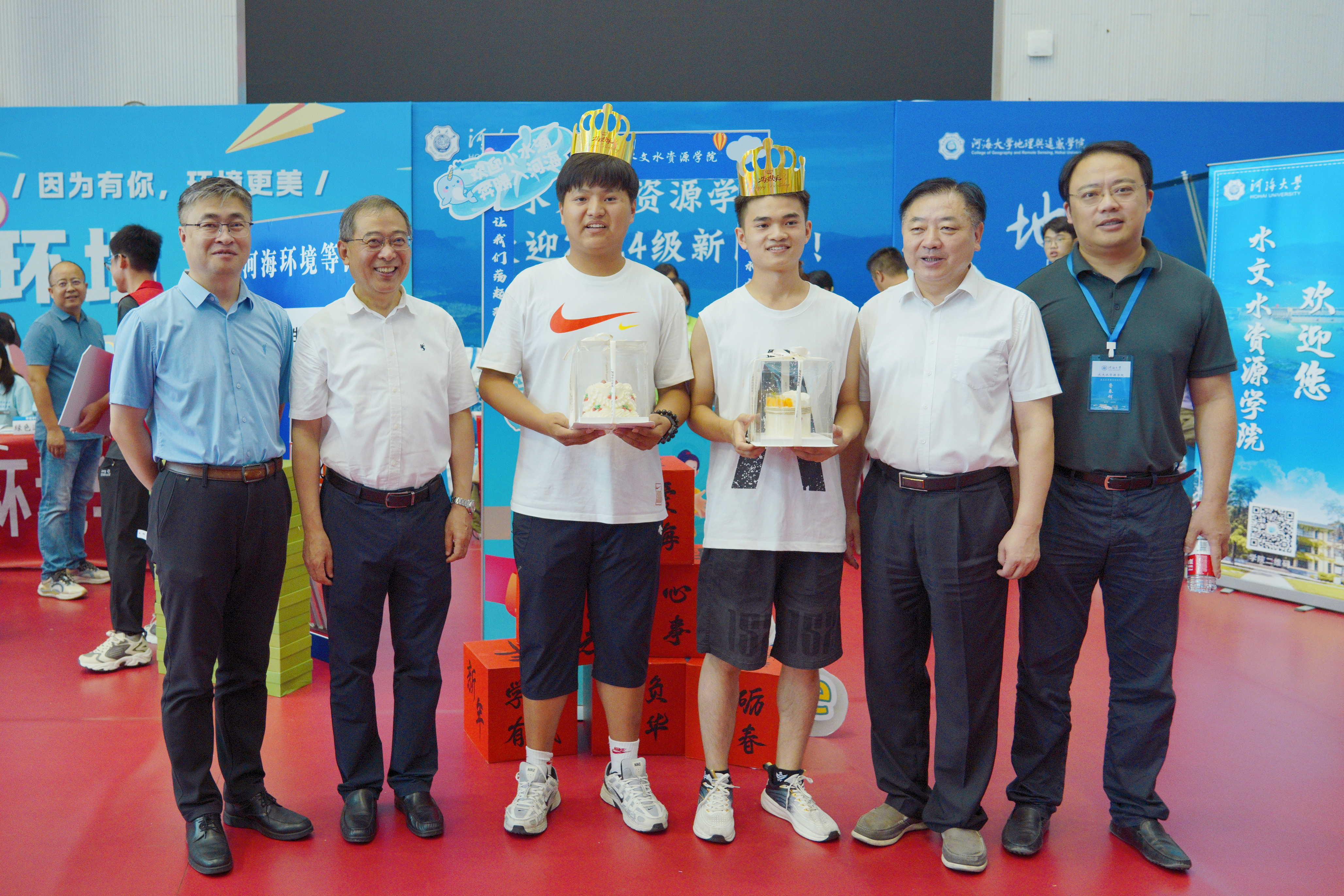确保新生能够快速熟悉校园生活,在学院找到家的感觉,学院为新生同学们精心准备了惊喜“大礼包”,里面有学院定制的帆布袋、鸭舌帽、文具礼袋、卡套、笔记本、文件夹和刻有每一位同学姓名的定制可乐等。此外,学院提前摸排、精心准备,开展“为报到日过生日的新生送生日祝福”活动,邀请杨桂山校长、陆国宾副书记为2名有着特别缘分的水文萌新带来了生日惊喜,以这种特别的方式欢迎他们加入水文院大家庭,将关爱和温暖传递至学生中间。活动现场,温暖与感动萦绕在每一位老师、同学的心头。