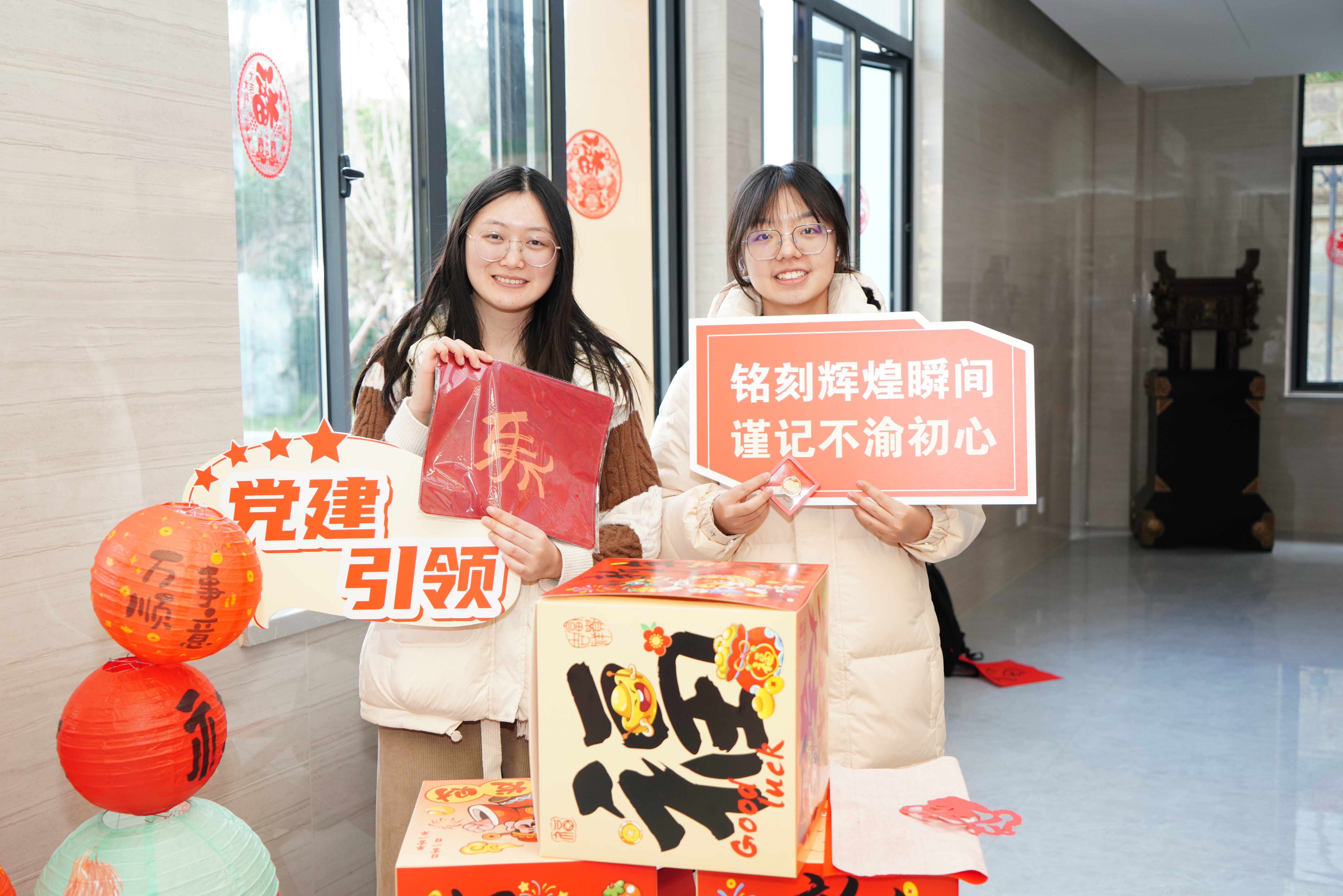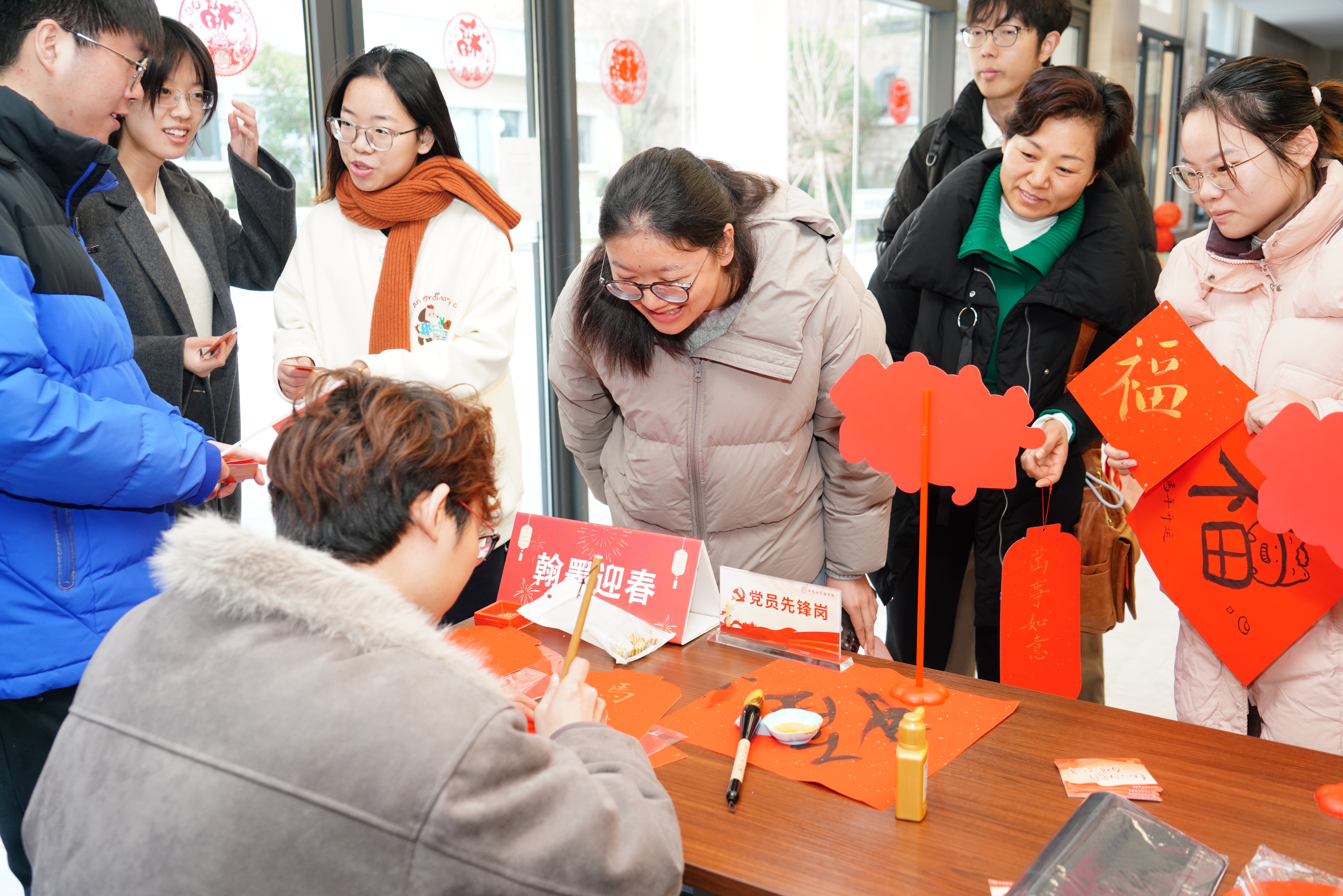 现场还设置党员先锋岗,由党员同学们为学院师生撰写“福”字、拍摄打卡照片,以实际行动展现新时代党员的担当与服务精神。此外,本次活动依托线上平台开展跨校区知识竞赛,增强了三校区联动与学习交流。